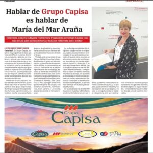 Hablar de Grupo Capisa es hablar de María del Mar Araña, quien desde hace más de 25 años forma parte de este grupo empresarial, donde por sus grandes capacidades humanas y profesionales, no tardó en escalar posiciones hasta llegar en la actualidad a desempeñarse como Directora General adjunta y Directora financiera de todo el Grupo.